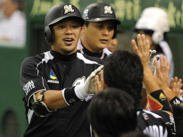 福浦は9号2ランを放ちベンチ前でハイタッチ!
