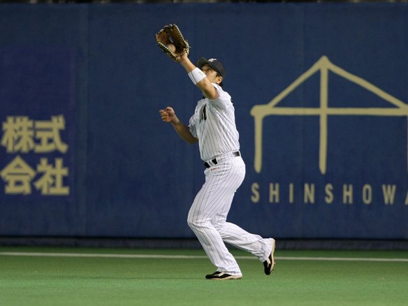 サブローはT-岡田の打球を落ち着いてキャッチ!