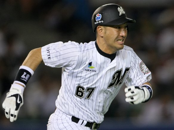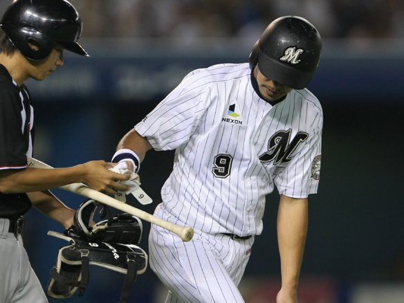 5番 福浦 右安 1-2からのストレートを引っ張り、ファースト・カブレラの脇を抜けてライト前に転がっていった! 2塁ランナー・金泰均は3塁ストップ! 福浦、8月10日以来の複数安打! |