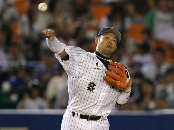 投手 木佐貫 1番 西岡 二ゴ 1-1から低めのストレートを打ち損じ、高いバウンドとなった打球をセカンド・後藤に処理された。 |