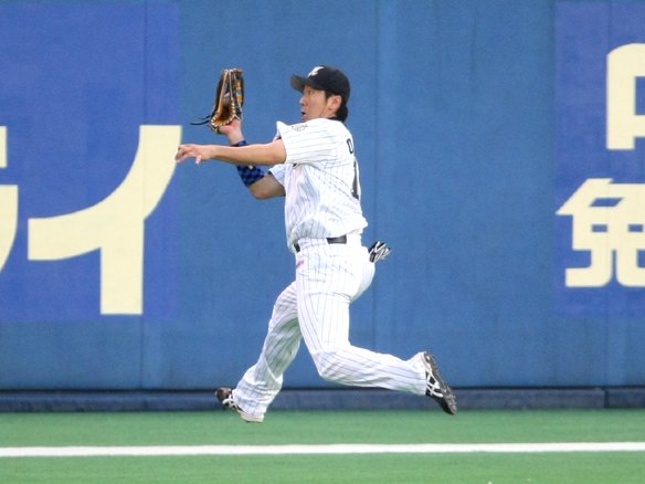 3番 井口 右飛 0-1からアウトコース寄りのストレートを弾き返すと打球は痛烈な勢いでライト方向へ飛んだ。ライト・下山の頭上を越えるかと思われたが、背走する下山のジャンピングキャッチに阻まれてしまった。 |