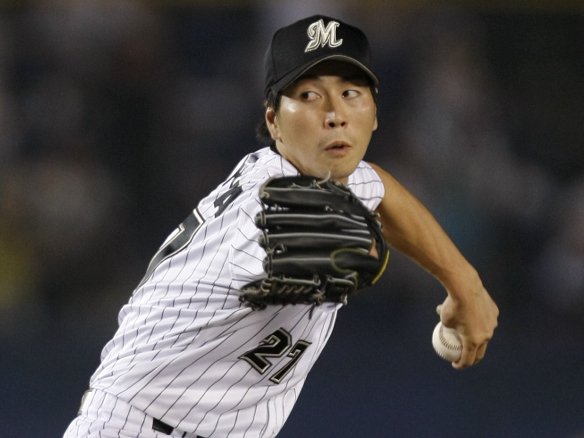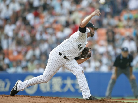 投手 金子千 バファローズはここでエースの金子千を投入し逃げ切りを図ってきましたが、それを打ち崩すべく西岡がヒットで出塁。しかし、後続を打ち取られてしまいました。金子千を攻略して逆転し、相手に大きなダメージを与えておきたい! |