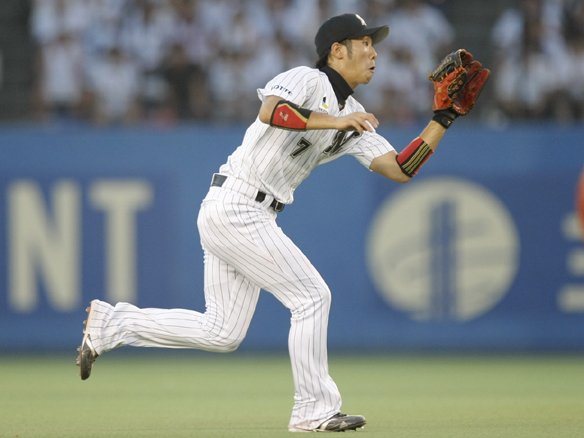 カブレラの打球を落ち着いてさばく西岡