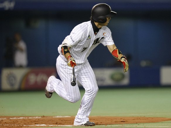 3番 井口 左安 2-2からの8球目、高めへのストレートを引っ張ると、打球は三遊間を抜けレフト前へ転がっていった。 |
