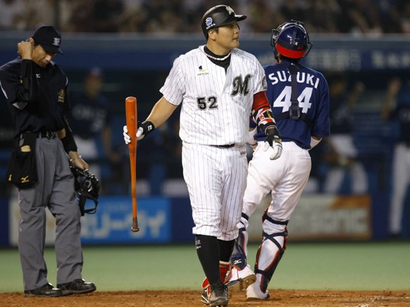 4番 金泰均 左本 1-1からのインコースへのストレートを思い切り引っ張ると、鋭い打球がレフトへ!! 低い弾道で飛んでいった打球はあっという間にレフトスタンドへ突き刺さった!! 金泰均の千葉マリンでは6月29日以来となる20号2ランで3対1!! ![]() 3