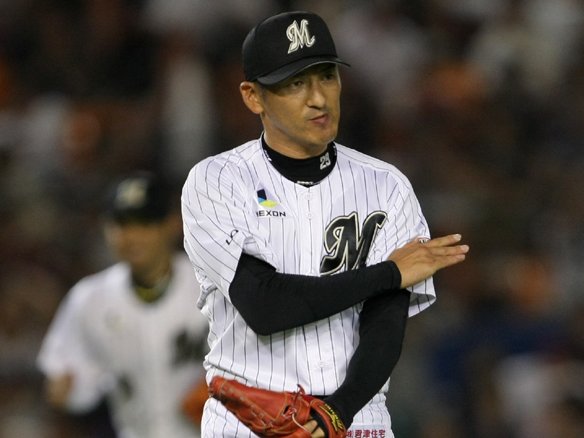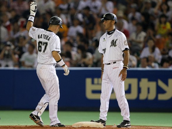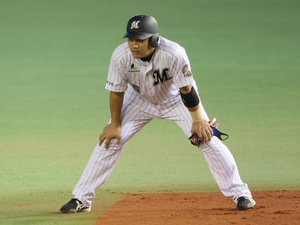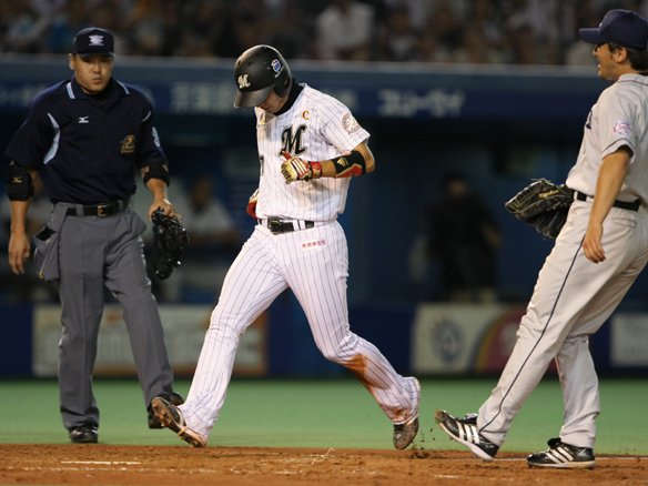3番 中島 三ゴ フルカウントからファールで粘られた後の9球目、インコースへのシュートで詰まらせると、打球はサード・今江への高いバウンドのゴロとなった。走り込んできた今江が難しいバウンドにグラブを合わせて捕球すると、素早く2塁ベースカバーに入ったセカンド・井口に送球して2塁フォースアウト。1塁へ転送するも間に合わず中島が1塁に残り、この間に3塁ランナー・片岡が生還して2対1。 ![]() 1