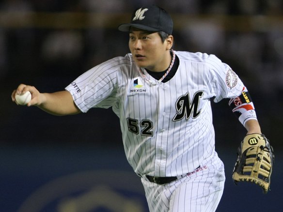 4番 金泰均 三ゴ 1-2からインコース低めへのスライダーをキャッチャー・細川が後ろにそらし、ボールがバックネット方向を転々とする間に1塁ランナー・井口は2塁へ進塁。記録はワイルドピッチ。 |