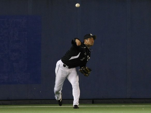 5番 フェルナンデス 右飛 初球、アウトコース高めのフォークを打ち返されるも、高々と上がったフライをこの回からライトに回った清田がフェンス手前でキャッチした。 |