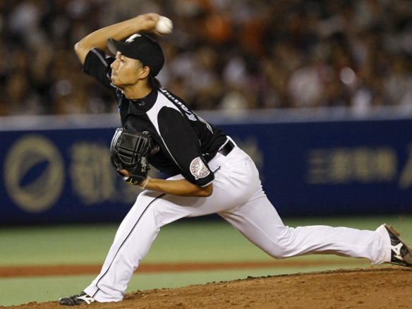 投手 岡本篤 【埼玉西武選手交代】 ピッチャー・西口→岡本篤 |