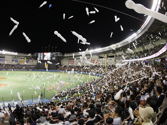 勝利の願いを込めた多数の風船がスタンドを舞う!