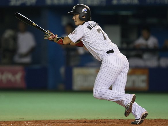左前に華麗な安打を放つ西岡!