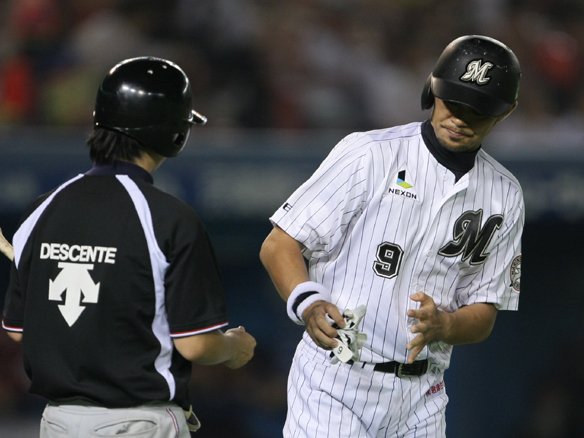 投手 岩隈 5番 福浦 二ゴ 1-1からアウトコース寄り低めに落ちるフォークをバットの先で引っ掛けた打球は低いゴロとなり、セカンド・高須にさばかれてしまった。 |