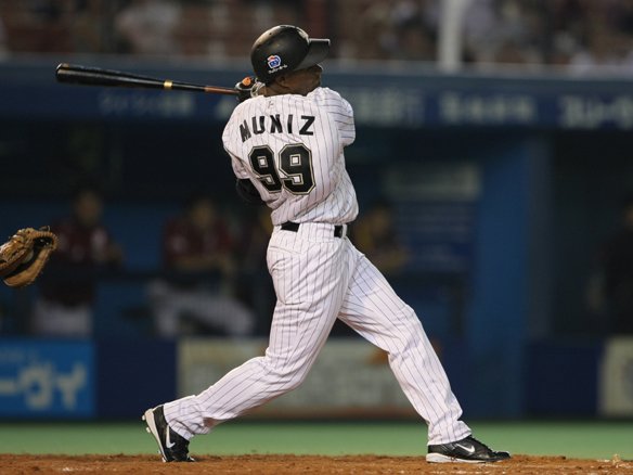 9番 ムニス 空三振 2-1からの4球目、アウトコース高めに外れるストレートを強振したが、ボールはキャッチャー・嶋のミットに収まってしまった。 |