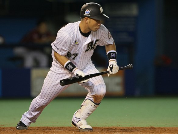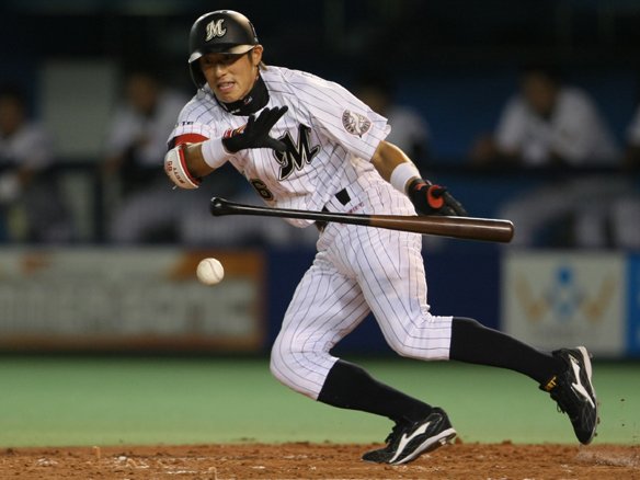 2番 清田 投犠 初球、バントの構えを見せてインコース高めのストレートを3塁側に落とした打球は、ピッチャー・ラズナーが拾い上げて1塁へ送球。送りバントを成功させて、2塁ランナー・西岡を3塁へと進めた!! |