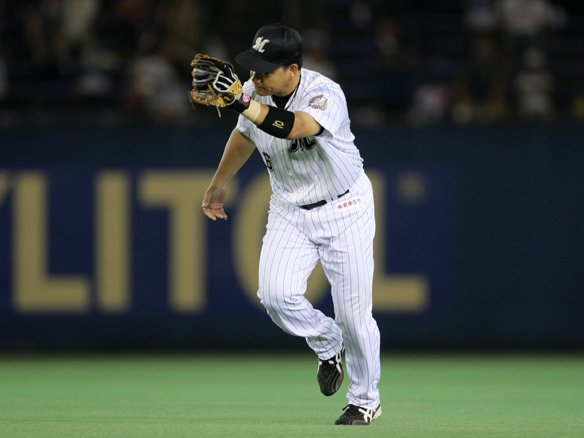 5番 福浦 左安 初球、アウトコース低めに逃げていくシュートをバットの先でうまくボールを乗せ、鋭い当たりをレフト線に運んだ! 3塁ランナー・西岡が還り1対3! ![]() 1