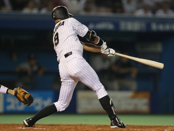 1番 田中賢 見三振 フルカウントからインコースいっぱいのストレートがズバッと決まった! |