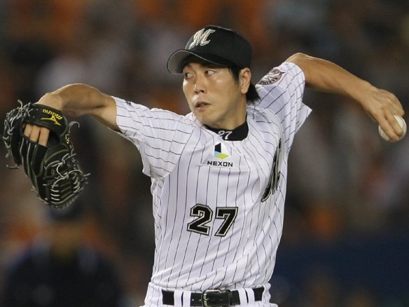 投手 ウルフ 4番 金泰均 投ゴ 初球、真ん中低めのカットボールをバットの先に当ててしまい、ボテボテのゴロとなった打球はピッチャー・ウルフに難なく処理されてしまった。 |