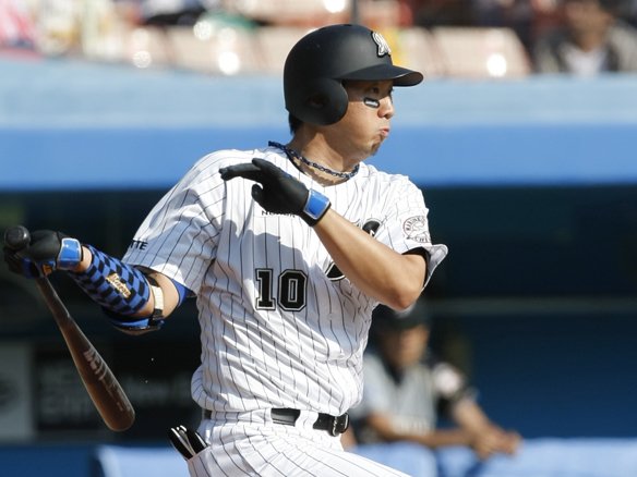 9番 飯山 右犠飛 初球、アウトコース寄りのスライダーを打ち上げた打球は、ライト・清田がキャッチ。バックホームしたが、わずかに1塁側にそれて、3塁ランナー・糸井がホームイン。0対1。 ![]() 0