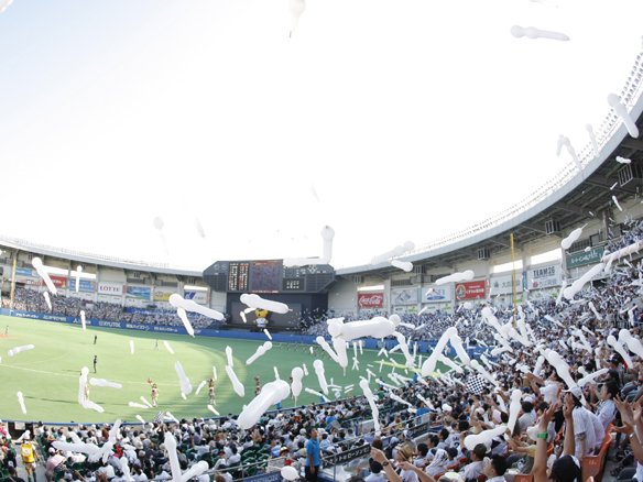 一打サヨナラのチャンスに今江の名前がコールされると、スタジアムから大歓声が上がった!! |