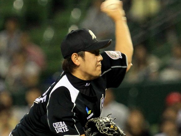 ここまで西口に封じ込まれていた打線でしたが、先制を許した直後に大爆発! 西岡がフォアボールを選んで足掛かりを作ると、福浦と今江の連続ホームランなどで一挙5点を奪って逆転に成功しました!! ここまで相手打線の攻撃を退けてきた成瀬には、大きなプレゼント! |