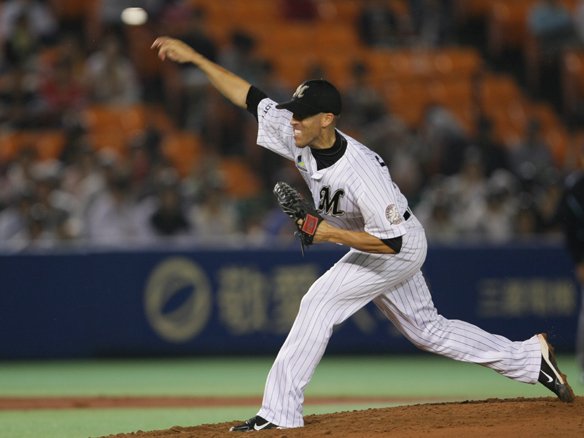 投手 コーリー 6番 松中 一ゴ 1-2から真ん中のチェンジアップを引っ掛けさせ、平凡なゴロとなった打球はファースト・金泰均が少し後方に下がってキャッチ。1塁ベースカバーに走るピッチャー・コーリーにトスした。 |