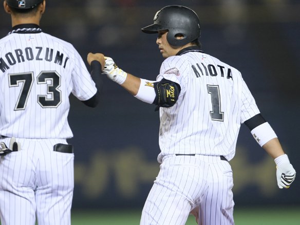 投手 山田 西岡が今季初の先頭打者ホームランとなる9号ソロを放って口火を切ると、井口が14号ソロを左翼席に運び、一発攻勢で先制に成功しました! 初回から打線の援護を受けたコーリーがキッチリとホークスの攻撃を封じ、序盤から試合の主導権を握っていきたいところです! |