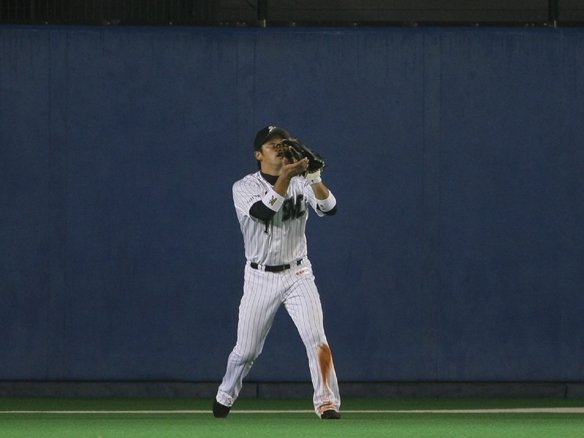 3番 オーティズ 右飛 初球、真ん中高めのカットボールを打ち上げさせ、高く上がった打球は右中間でセンター・岡田、ライト・清田が追いかけ、最後は清田が落下点に入って捕球した。 |