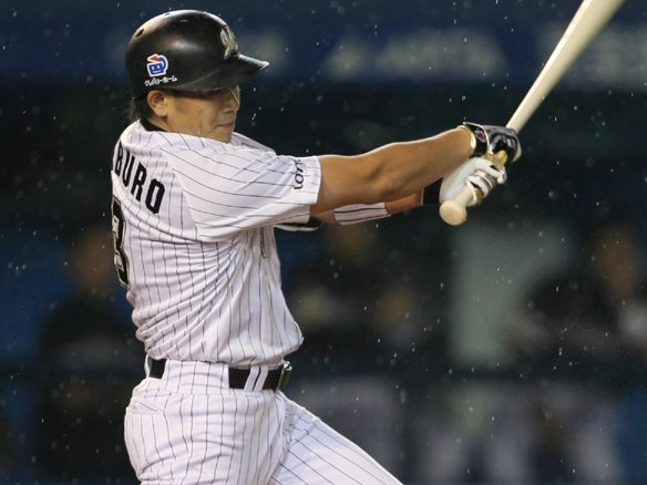 6番 サブロー 四球 0-3から高く浮いたストレートを見送った! |