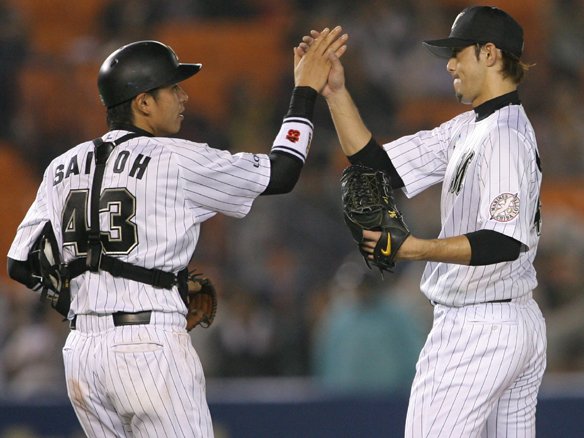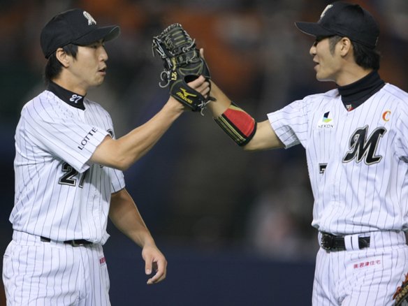 最後は守護神・小林宏が相手の代打攻勢をかわして3対0で試合終了。2位・ホークスとの直接対決となった3連戦を2勝1敗の勝ち越しで終えました! 試合前から雨が降り続く悪天候の中、初回に西岡、井口のホームランで先制点を奪うと、そのリードを先発・コーリーを始めとする投手陣が守り切る試合展開で雨中の激闘に勝利。まさに「和」の野球で優勝戦線に踏みとどまりました。明後日からはビジターでの戦いが続きますが、一つずつしっかりと勝ち抜き、逆転優勝に向けて突き進みましょう! |