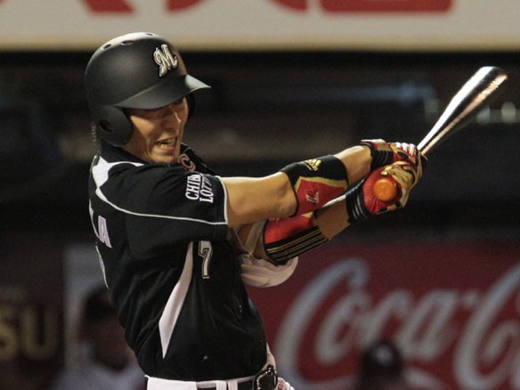 1番 西岡 中安 初球、インコース高めへのストレートを弾き返すと、ライナー性の打球はセンター・聖澤の前でバウンドした! 今日も打撃絶好調の西岡はこのヒットで今季26回目の猛打賞を記録し、プロ野球タイ記録に並んだ!! |