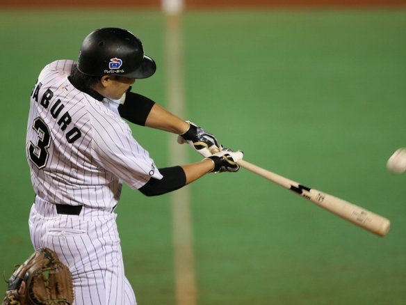 投手 川井 4番 サブロー 右飛 2-1からアウトコースへのスライダーにバットを払うように当てると、ライナー性の当たりがライト方向へ。しかしライト線方向に寄ったライト・牧田におさえられてしまった。 |