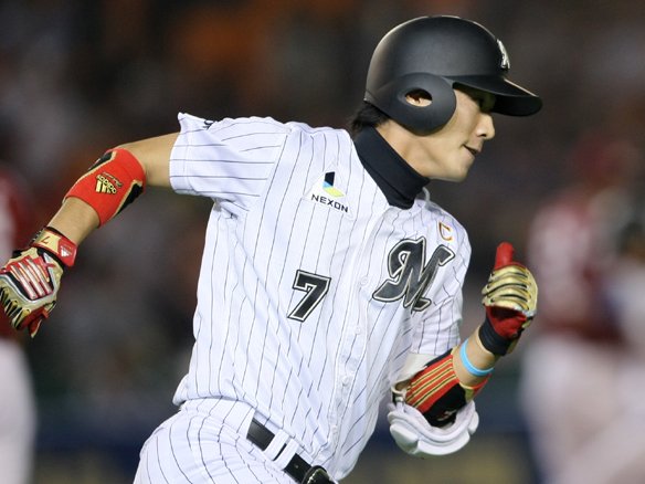 3番 井口 中越二 1-0からの高めのボールを思い切りよく振り抜くと、大きな打球はセンター後方へ飛び、そのまま背走したセンター・聖澤の頭上を越えた! この間に2塁ランナー・西岡がホームへ生還し、5対2! 貴重な追加点を奪う! 打った井口は2塁へ! ![]() 5