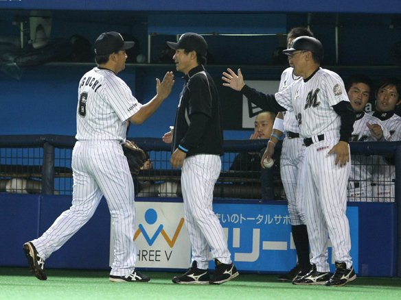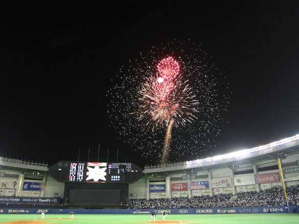 上位打線に回る攻撃でしたが、川井の緩急の効いた投球の前に3者凡退に封じられてしまいました。5回裏を終え、千葉マリンの上空には結びの三番「勝利を結ぶ花火」が打ち上げられています。チームの「和」を結実させてクライマックスシリーズ進出への扉をこじ開けるためにも、花火のように力強い気持ちを持って試合後半に臨んでいきたいところです!! |