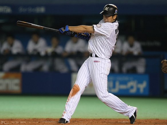 3番 井口 1-2から高めのカーブを打ち上げてしまい、後退したセカンド・高須に捕球されてしまった。 |