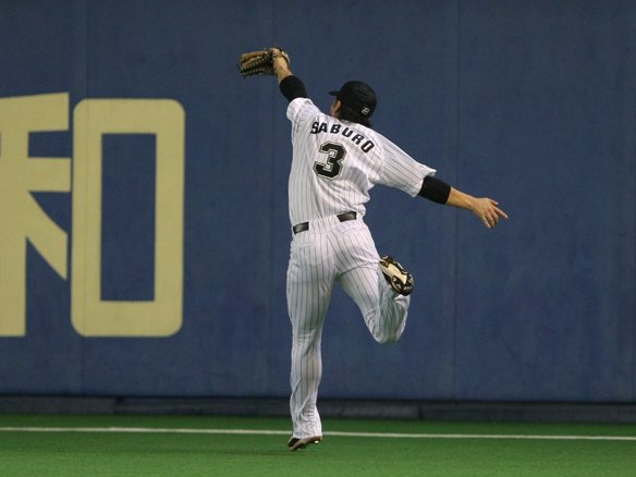 サブローは右中間に飛んだ中川の打球をランニングキャッチ!