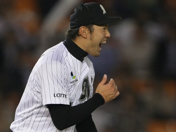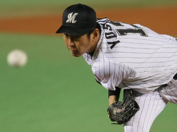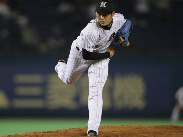 緊張感のある中、一球一球自分の球筋を確かめるように投げる吉見は、冷静なマウンドさばきで三振の山を築きました!! ここはマリーンズ打線が先制点を奪って、吉見をもり立てていきたいところです!! |