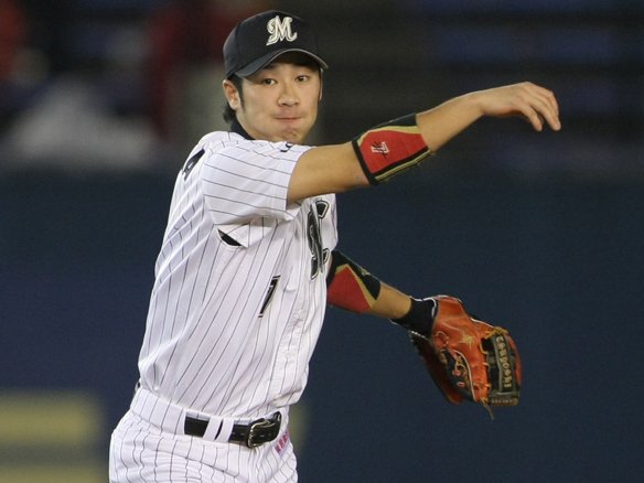 投手 長谷川 1番 西岡 左中二 0-1からアウトコース寄り高めに浮いたストレートを左中間に弾き返した打球は、回りこむレフト・荒金の前で弾む!! 打った西岡は快足を飛ばして2塁に滑り込んだ!! 西岡はプロ野球史上3位タイとなるシーズン204安打をマーク!! |