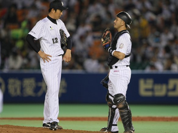 投手 伊藤 投手 小林宏 【千葉ロッテ選手交代】 ピッチャー・伊藤→小林宏 代走・岡田→センター センター・清田→レフト |