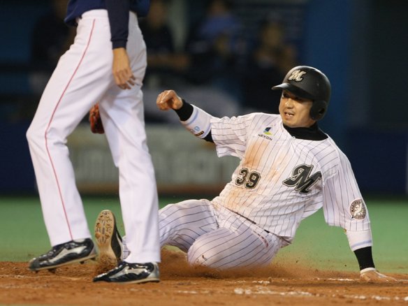 【千葉ロッテ選手交代】 1塁ランナー・今岡→代走・田中雅 |