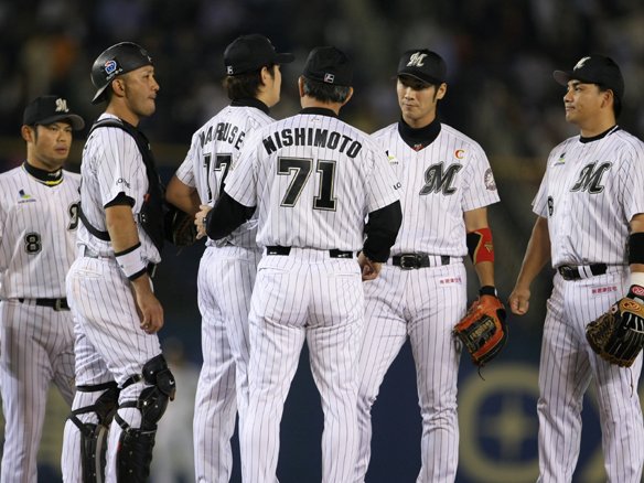 投手 内 投手 伊藤 【千葉ロッテ選手交代】 ピッチャー・内→伊藤 代打・岡田→センター センター・清田→レフト |