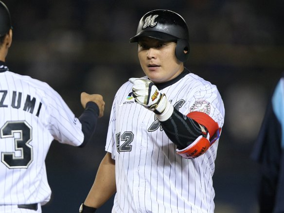 4番 サブロー 遊ゴ 2-2からアウトコース高めのストレートを引っ張った打球は、ショート・バイナムの正面を突いたが、捕球したバイナムは3塁へ送球。挟まれた2塁ランナー・井口は2塁上でタッチアウトになったが、その間に3塁ランナー・清田が生還。1対2。打ったサブローは1塁に残った。 ![]() 1