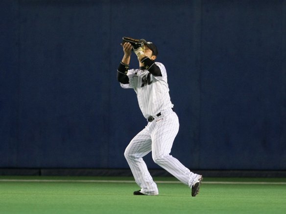 4番 サブロー 右飛 初球、真ん中高めのカーブを引きつけて、右中間に弾き返した大きな打球は、あとひと伸び足りず、フェンス手前でライト・森山にキャッチされてしまった。 |