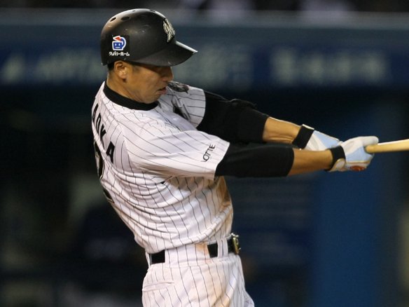 6番 一輝 中安 2-2からの5球目、インコース寄りのストレートに詰まりながらも弾き返された打球は、前方に駆け寄るセンター・清田の前で弾んだ。2塁ランナー・北川は3塁でストップ。 |