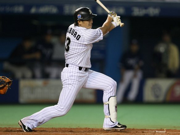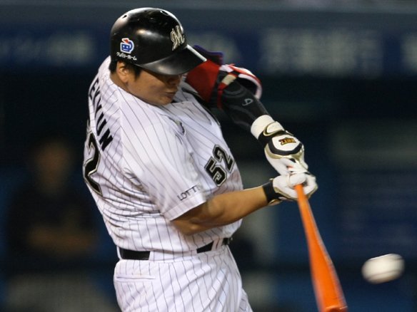 4番 サブロー 四球 0-3からアウトコース高めにやや敬遠気味に外されたストレートを見送り、サブローは1塁へと向かった。 |