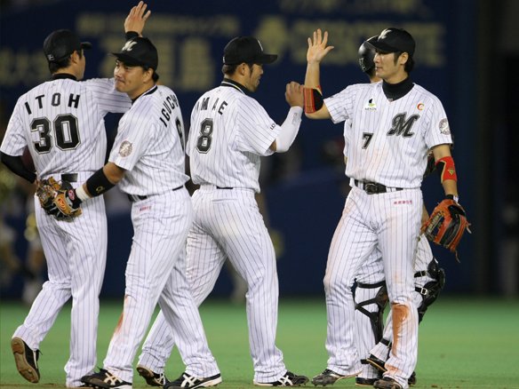 成瀬が残した2人のランナーを背負った2番手・内でしたが、バファローズの反撃を犠牲フライによる1点だけに食い止めました!! さぁ、今度はマリーンズのラッキー7の攻撃です。再び突き放していきましょう!! |