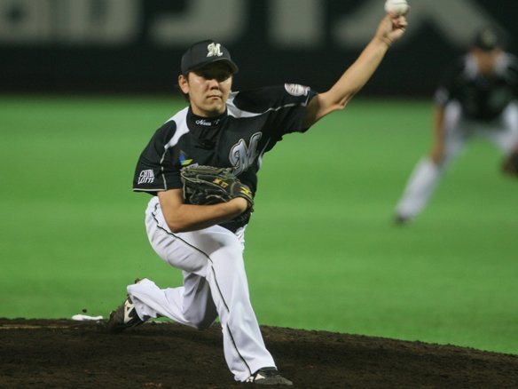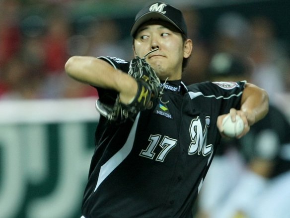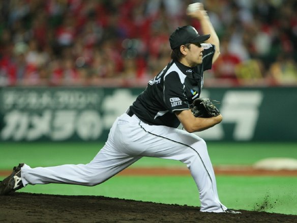 4番 小久保 遊併 1-0からのアウトコースへのチェンジアップを引っ掛けさせると、打球はショート・西岡へのボテボテのゴロ! 西岡が2塁ベースカバーに入ったセカンド・井口にトスし2塁フォースアウト。井口が1塁へ転送し6-4-3のダブルプレーとなった! |