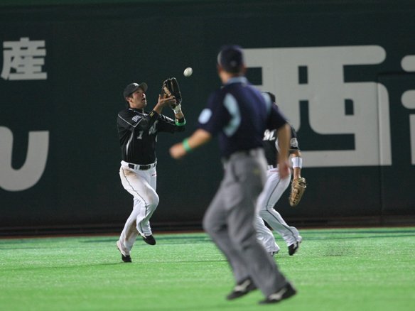 投手 成瀬 1番 川崎 中飛 1-0からの低めへのスライダーを振り抜かれるも、やや失速した打球をセンター・清田が右中間寄りに動きながら打球をキャッチした。 |