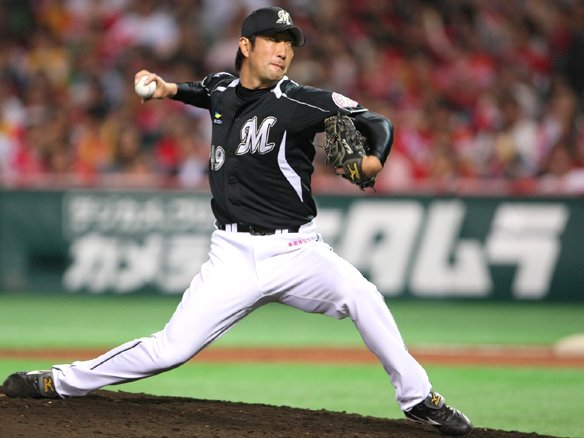 1番 川崎 二ゴ 2-2からファールで4球粘られた後の9球目、インコース低めのフォークで窮屈なバッティングをさせ、ボテボテのゴロをセカンド・井口が定位置でゆっくりとさばいた。 |