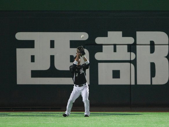 投手 マーフィー 9番 山崎 左安 2-0からアウトコース低めの変化球に合わされ、ライナー性の打球がジャンプするショート・西岡の頭上を越えた。 |