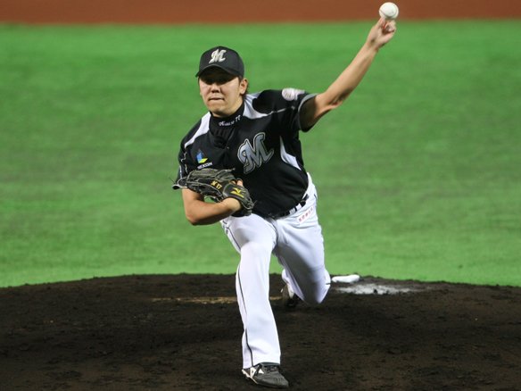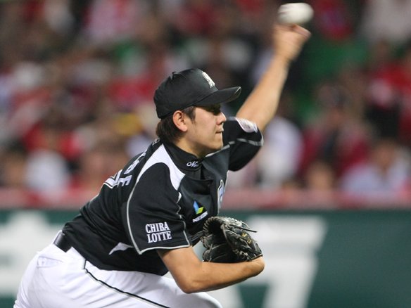 9番 里崎 三ゴ フルカウントからの6球目、低めへのフォークを引っ掛けてしまい、サード・松田に前進しながら打球を処理された。 |